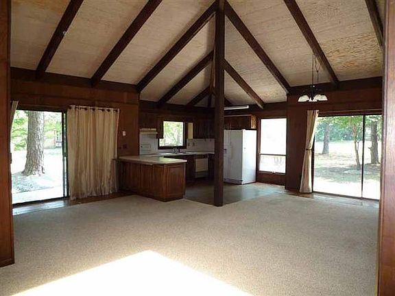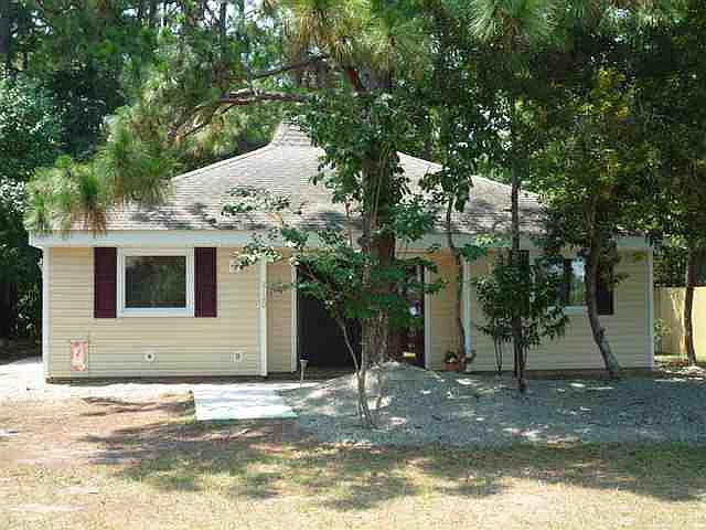 This very well-maintained 3 bedroom/2 bath home would be perfect for that beach vacation home or for the first-time home buyer. With just under 1300 heated SF, the wide open floor plan features a high vaulted, real wood beamed ceiling with large skylight in the center. Open kitchen with breakfast bar and separate dining area. Split bedroom plan. The master has sliders to patio and a full bath. The other two bedrooms share a Jack and Jill bath. The master and one other bedroom also feature the vaulted, wood beamed ceilings. New vinyl siding installed in May 2012, new 13 SEER HVAC system in 2008, roof with 25 yr. shingles replaced in 1998, new hot water heater in 2010. New vinyl flooring and vanity tops in baths. Freshly painted, carpeting 3 years old and just cleaned. Transferrable termite bond. Low utility bills. Home is situated well back from the road on a .28 acre lot. Just minutes to the beach and all conveniences yet tucked away in a quiet setting.