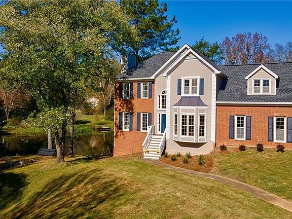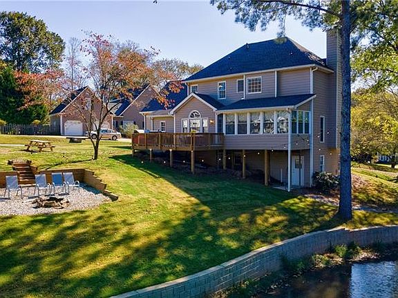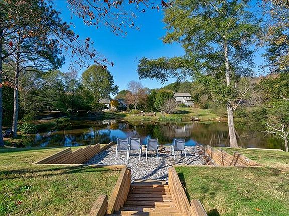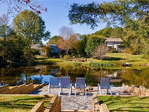 Absolutely AMAZING 1 acre lakefront lot in quiet community with no HOA!!! MUST SEE the view!! Unique opportunity to own a wonderful home on a small, private lake. LARGE DECK is perfect for grilling and overlooks fire pit area on property to enjoy the cooler nights outside. Take your paddle boat out on a sunny afternoon!! Hand-scraped hardwood floors throughout home. FRESHLY painted and new flooring in bathrooms. HIGHLY-RATED Schools (Creekview HS). HUGE bonus room/4th bedroom upstairs and an unfinished basement ready for your finishing touches to add even more living space to this great home. Close to shopping yet this feels like your own little quiet oasis.