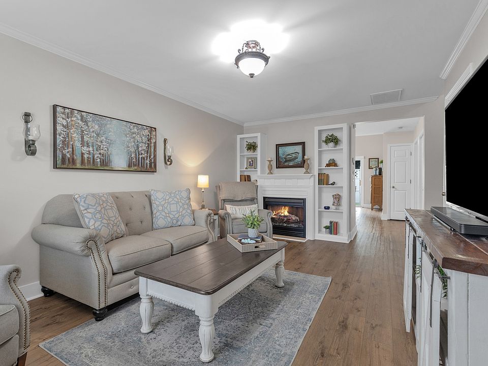 New luxury vinyl plank (LVP) flooring flows throughout the entire home. The primary suite is on the first floor.  The upstairs features an extra large bedroom, bathroom, and a large walk-in closet, complete with its own charging station.