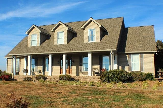 2120 Lick Branch Rd, 20 acres fenced w/high tensile & barn, 5 bedrooms, 3.5 baths w/basement overlooking pasture. Feautes 9' ceilings, custom rock fireplace w/gas logs in family room. Kitchen w/appliances including double oven, & breakfast area leading into sunroom that overlooks huge deck. Master suite on main floor along w/2 more bedrooms, formal dining room & living room. Upstairs has 2 large bedrooms & Jack & Jill bath. 2 garages on main level and 2 car drive-in basement garage, plus much more.