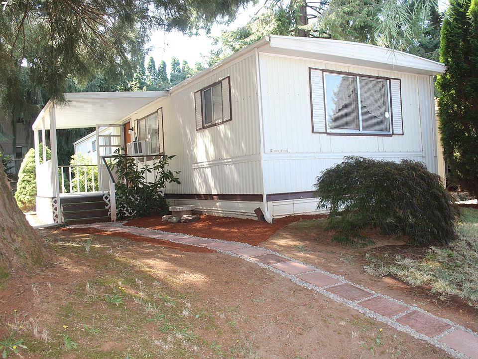 Move in ready home! Fresh paint inside, brand new carpet, updates throughout. All appliances including washer and dryer stay. Home has a shed, yard, and porch. Feels like you are in the middle of the forest. Friendly neighbors, 55+ park. Park rent is $449/month and includes usage of rec room and swimming pool.