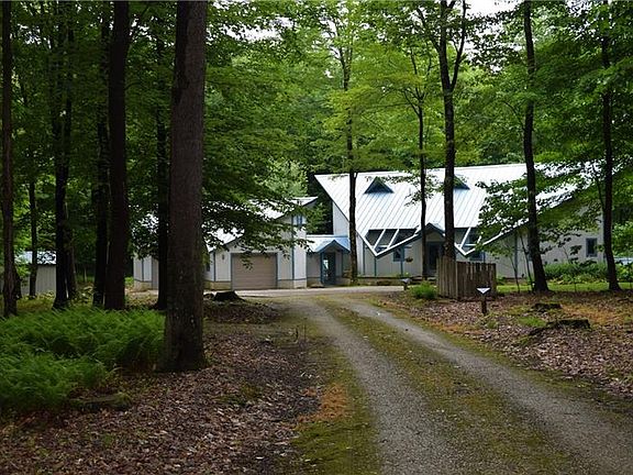ONLY 8 MILES FROM SEVEN SPRINGS MTN. RESORT! NESTLED AMONG A SPRAWLING CANOPY OF TREES ON 3.04 LEVEL ACRES IS THIS MAGNIFICENT 5 BEDROOM HOME IN OAK RIDGE ESTATES! THE UNIQUE ARCHITECTURAL DESIGN WITH ATTENTION TO DETAIL, LOW MAINTENANCE FEATURES, & "GREEN" CONCEPTS OFFERS THE UTMOST IN MOUNTAIN LIVING! THE MAIN LIVING AREA OFFERS HEATED FLOORS, A SPACIOUS GREAT ROOM, KITCHEN, PANTRY, LAUNDRY, DINING AREA, & 1/2 BATH. THE MASTER BEDROOM IS, ALSO ON THE MAIN FLOOR & HAS A GAS FIREPLACE (ALSO VISIBLE FROM THE GREAT ROOM), A DECK & A SPECTACULAR FULL BATH WITH WALK-IN SHOWER! ACCESS AN OPEN COMPOSITE DECK FROM THIS LEVEL & ENJOY THE PRIVACY OF THIS PROPERTY WITH ITS NATURAL HABITAT. TWO BEDROOMS/FULL BATH ARE LOCATED ON THE 2ND FLOOR WITH AN OPEN HALLWAY OVERLOOKING THE GREAT ROOM! THE FINISHED LOWER LEVEL HAS 2 BEDROOMS/FULL BATH & THE LAYOUT OFFERS ENDLESS POSSIBILITIES WITH NO SHORTAGE OF STORAGE SPACE! BUYERS MUST SEE THIS REMARKABLE HOME TO APPRECIATE ITS "ONE-OF-A-KIND" CHARACTER!!
