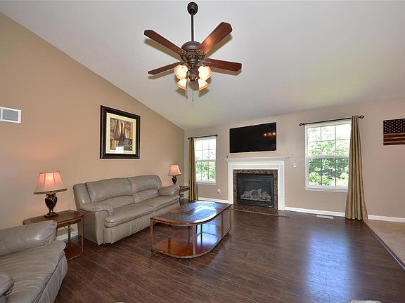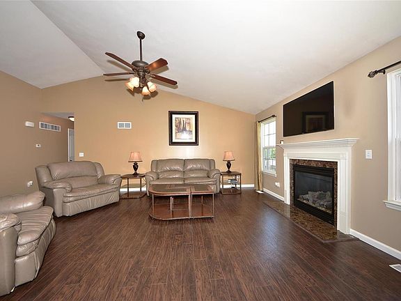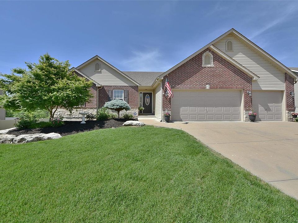 Everyone is certain to instantly adore this terrific 4 bed/3 bath brick-front ranch! The wide open floorplan welcomes you with a formal entry foyer that flows naturally into the spacious great room where you'll find a marble surrounded fireplace + a soaring cathedral ceiling that continues across the dining room & adjacent kitchen. The chef in you will delight at the bright & inviting kitchen featuring an L-shaped center island with wrap-around breakfast bar + ample custom cabinetry, tile backsplash, stainless appliances & plant shelf. Retire in true comfort to the generously sized master suite that includes a walk-in closet & luxurious private bath with double vanity, corner lounging tub & walk-in shower. Ultra-convenient main floor laundry. Enjoy tremendously expanded living space with the finished walk-out/look-out LL adding a huge family room with recessed bar & sliders to the covered patio + the 4th bedroom & 3rd full bathroom. Big 3-car garage. Set an Appointment Today!