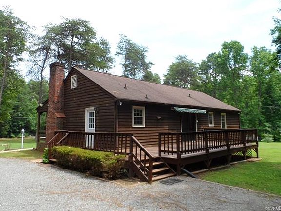Located on 3.66 acres of prime, private, peaceful Goochland land. This charming rustic ranch offers 1300 square feet of living space with large living room, kitchen with dining area, 3 bedrooms,two full baths and laundry area. The master bedroom has an en suite bath. New carpet throughout and new flooring in the kitchen and dining area. Lots of storage in a floored attic and a large detached shed. Enjoy the large wooded lot and wrap around deck at this private country retreat.