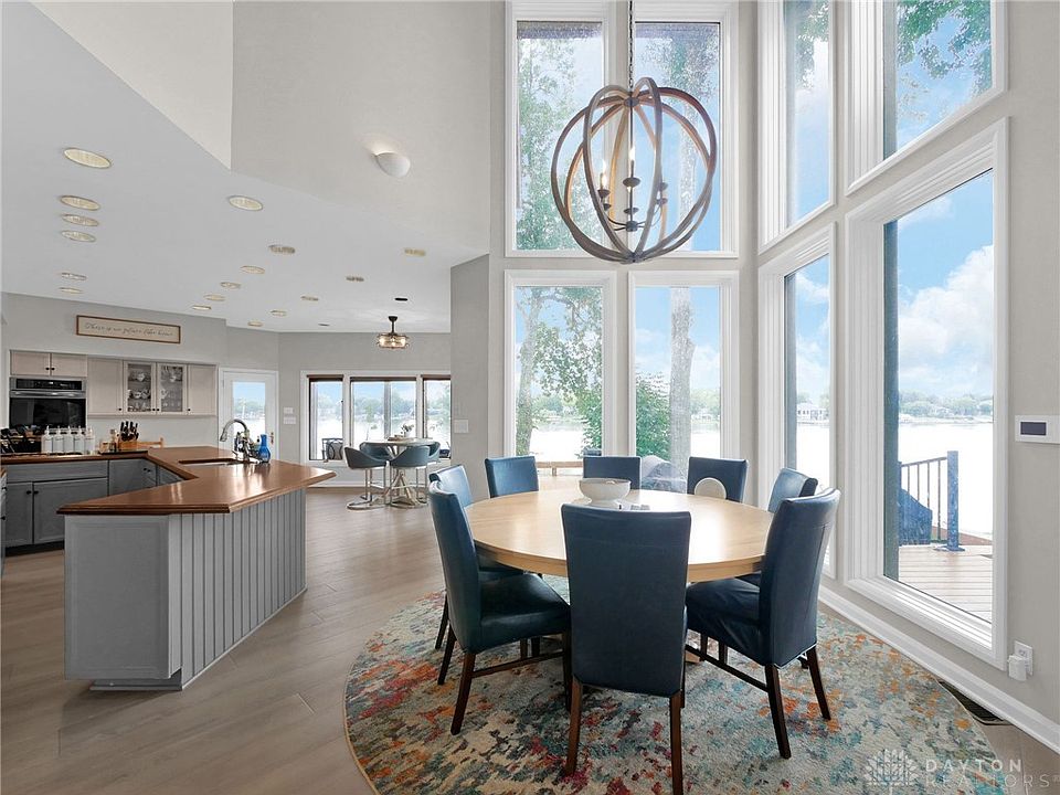 Enjoy amazing 180 degree views from this exceptional waterfront residence. Offering 6 bedrooms, 4 baths, and over 5000 square feet of well-designed living space, the home is highlighted by soaring two-story windows, fresh paint, new flooring throughout the main area, a secret office, and a large entertainer's kitchen. Elegant details such as high ceilings, striking light fixtures, and light wood floors create a stunning interior. Architecturally designed with both comfort and entertaining in mind, the property includes two stunning fireplaces, expansive multi-level decks, a screened porch, and a unique, double boathouse with an upper viewing deck and two electric boat lifts. Perfectly positioned to capture both sunrise and sunset, this rare location is truly one-of-a-kind! With extensive updates throughout, newer mechanical systems, abundant storage, and an unmatched setting, this remarkable home combines sophistication with the easygoing charm. This home is a must see!