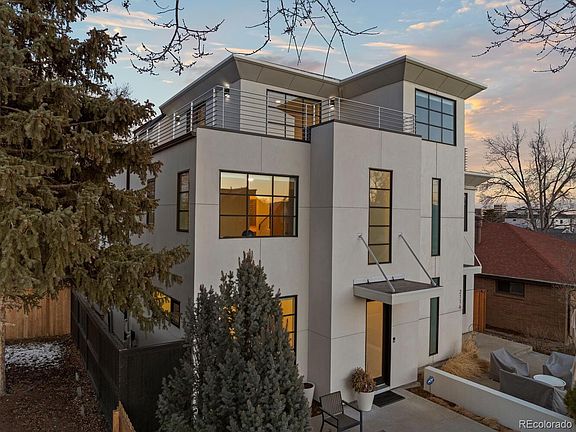 First time on the market since 2012 - single owner property!! This stunning Sloan's Lake home is the epitome of modern elegance, boasting unobstructed mountain views to the west. With 3 beds, 4 baths and almost 3000 square feet of curated living space, this home is a testament to thoughtful design + functionality. White oak hardwood floors and impeccable finishes create an atmosphere of refined comfort. A front dining room bathed in natural light from a large picture window is perfect for gathering and entertaining. Relish in the state of the art kitchen, featuring Bosch and Miele stainless appliances and an ample breakfast bar. The kitchen flows naturally into the living room with a custom fireplace, entertainment center with custom lighting, and backyard access. The tree-lined backyard provides a peaceful escape from the urban hustle. Retreat to the upstairs primary suite, with a remodeled en-suite 5-piece bath that boasts a glass standing shower, soaking tub, and dual custom walk-in closets. The third level features a scenic family room with rooftop access, as well as a separate office space with custom built-in desks and Murphy Bed, creating a modern flexible space for work and guests alike. The rooftop deck, shaded by the large tree out front, is perfect for relaxation and soaking in those mountain sunsets. Outside, the property has been meticulously enhanced with new stucco and flashing on all exterior walls, new sod, landscaping, painted handrails on the juliet balcony and more. An ADT Security System is in place to protect this special home. Additional amenities include Modern Fanco ceiling fans, Lutron dimmer switches, fresh paint, central AC, new AC Condensor, new fence and a 2-car garage.