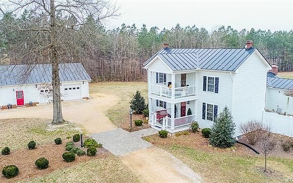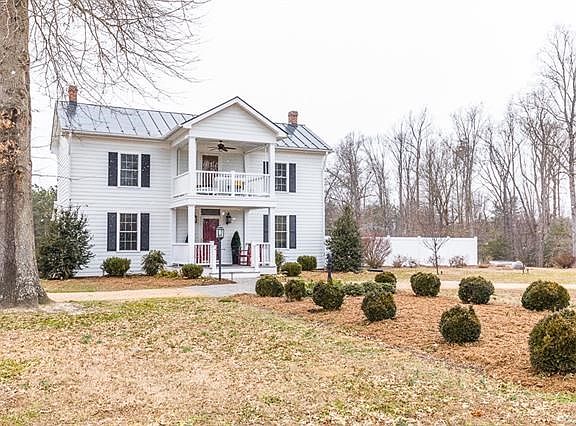 "Hickory" A hobby farm Circa 1895. Stunning farmhouse located on over 7 acres with 3 beds 2 baths and oversized 2 car detached garage. As you enter the property you will notice the upgrades including the standing seam metal roof along with the Hardiplank siding! Inside you will find cherry and heart pine floors throughout most of the home! The first floor master bedroom is one of a kind with random width heart pine floors, gas fireplace, and built in cabinets. The master bathroom is sparkling with quartz countertops, custom cabinets, heated tile floors and massive shower with rain head! The family room also has its own gas fireplace to keep you cozy in the winter. The kitchen has stainless appliances, loads of cabinets and an island. The dining room is located just off of the kitchen and has tons of natural light. Upstairs you will find another custom bathroom with beautiful tile shower! Both bedrooms upstairs have amazing heart pine floors. Outside you will find a side screened porch, upstairs sleeping porch, two different brick and paver patios, whole house generator, 2 stall barn with tack room, 3 bay pole shed, custom courtyard, fenced herb garden too much to list!!