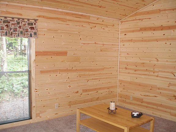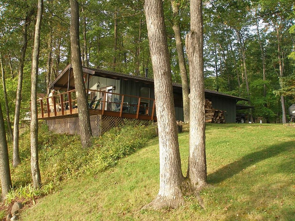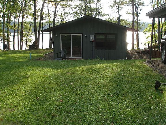 Newly remodeled from peak to floor joists, this "Cute as a bugs ear" cabin is the best way to describe it. New knotty pine interior, new landscaping, new flooring and new insulation. 2BR's, 1BA, fire pit ring and aluminum dock with 130' firm bottom swimming and fabulous views. 2 1/2 acres of land and 1 car detached garage.