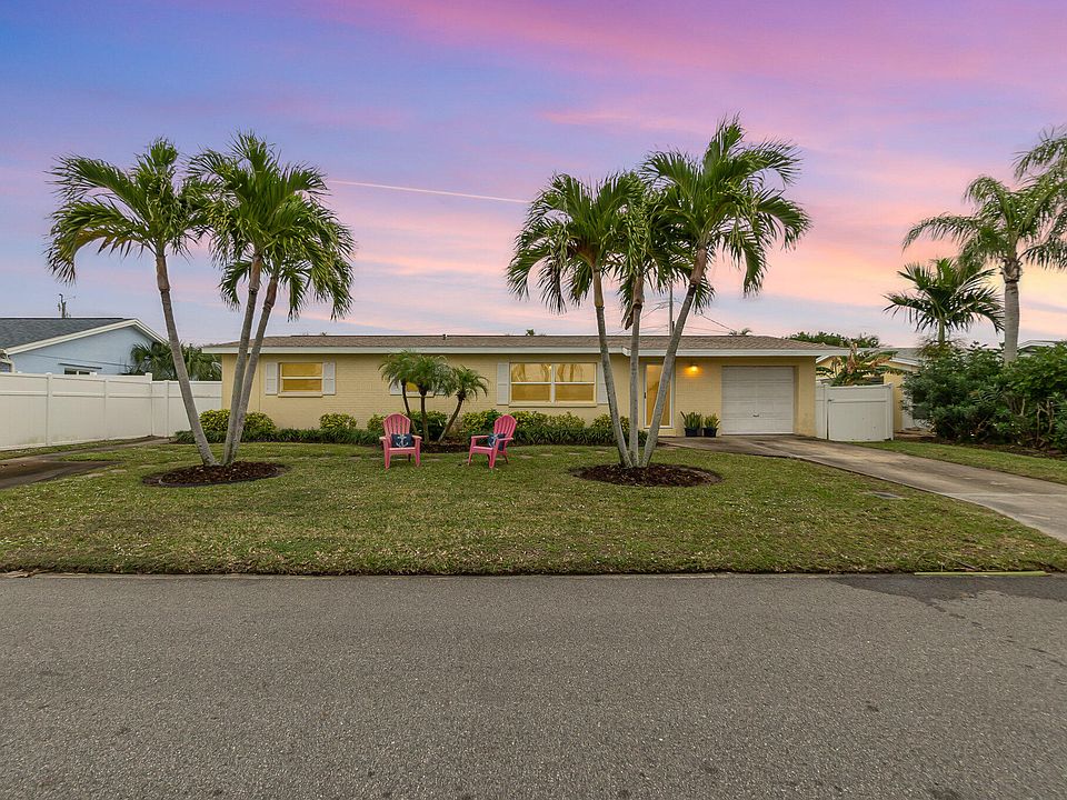 Fantastic location, fantastic opportunity! Live 2 blocks from the ocean or make it the perfect investment property for your portfolio. Walk into the welcoming living space and updated kitchen after a sunny day of lounging at the beach. Entertain in the spacious fenced in yard with covered back patio. Continuous tile flooring throughout, plenty of storage both inside, in closets and in the oversized one car garage. Bonus driveway (permitted) for RV/boat parking.