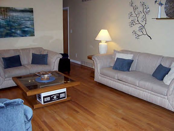 Darling Ranch! Beautiful Wood floors! Just walk in and relax!. Everything has been done for You. Home is very well maintained.Walk-in to the updated colors and Beautiful wood floors.Relax on your covered patio. The back Yard has a privacy fence. Roof replaced 2004, exterior doors 2004, siding 1999. Kitchen updated appliances stay= microwave,stove, refrigerator, washer, dryer. Sellerwill leave furniture. Newly painted Basement. lot size 62x119x36x110,8. A Treat To Show! Take a look