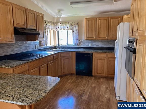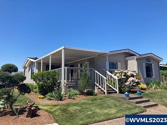 Great location in 55+ park. This corner lot property is unique. This triple wide with attached 2 car garage offers a comfortable floor plan. Large kitchen and dining area that opens up to a spacious covered deck area. Fully landscaped. All appliances included.