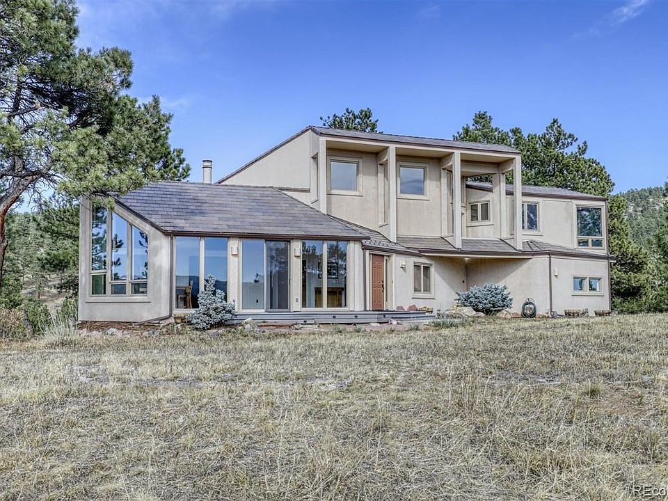This contemporary mountain home is a dream for any mountain living seeker. The southwest facing outdoor patio highlights the home's stunning view of Mt. Evans and poses the perfect place to enjoy a morning cup of coffee or an evening nightcap while entertaining. The vaulted ceilings, floor to ceiling windows and stone fireplace provide a welcomed refuge for family and friends alike. The remodeled bathrooms, renovated kitchen with accompanying new appliances, fresh hardwood floors and light fixtures, make this the perfect move-in ready home. One of the first and last impressions the home will make is the vast amount of natural light throughout. Take in the views in the warmth of the sunroom or open its sliding doors to breathe in the crisp Colorado mountain air. It really offers everything a mountain home should. And as an added bonus, just outside the front door you will find yourself connecting to miles of trails great for what outdoor adventures might come to mind.