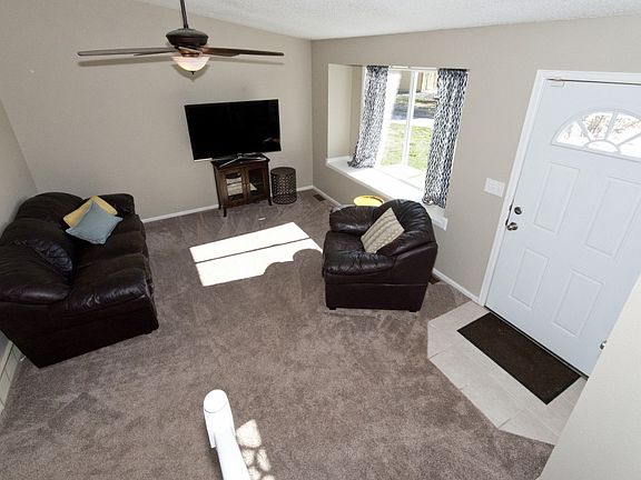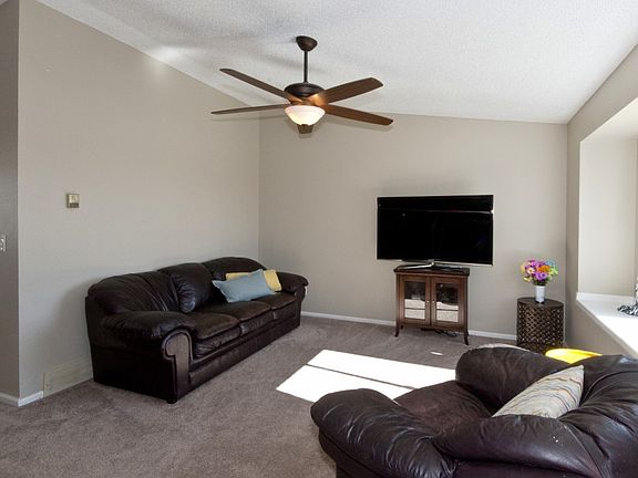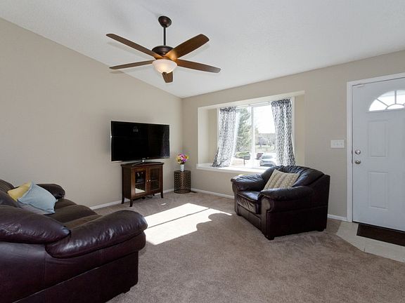 You can be happy here! New paint, carpet, and 2016 roof. Vaulted ceilings. The kitchen has oak cabinets, ceramic tile, and updated appliances. Large bay window in living room. Upstairs offers 3 bedrooms, full bath with ceramic tile floor & shower. Downstairs offers 3/4 bath with laundry, office or play area with french doors opening to a covered patio with mountain views of Pikes Peak. The large backyard is completely fenced and offers a 12x12 shed, firepit, sandbox, mature & new trees, newer fence, and mountain views. Two stall attached garage with shelves & insulated garage door. Located in a cul-de-sac directly across from school and park.