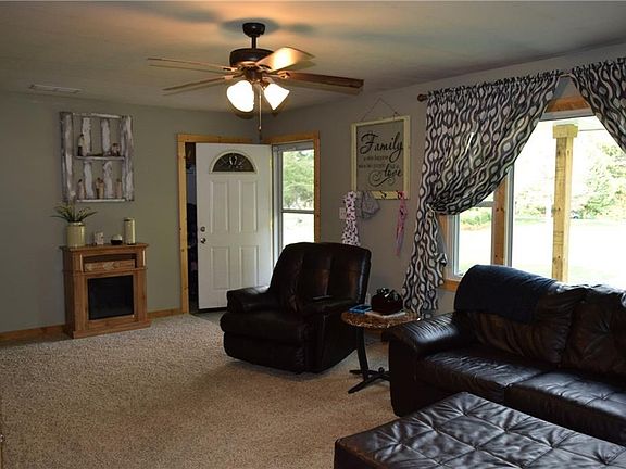 Charming country 3 bed, 1 bath ranch sitting on 4 acres overlooking large front yard. Enjoy the tranquility and wildlife of your woods and fishing in your well-maintained pond with a fountain. Kick back and relax on your newer decks off both the living room and spacious eat-in kitchen while the kids draw with chalk on the new front sidewalk.