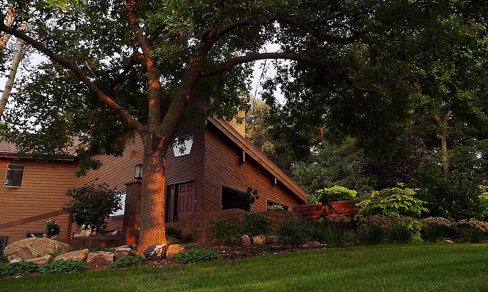 Country Living in the Heart of the City This one-of-a-kind home has over 2600 square feet of living space with 4 bedrooms and 2.5 bathrooms. This beautifully maintained home is located on 1.75 heavily wooded acres in Old Orchard Heights, minutes from downtown. The private lot provides a serene and secluded residence where you can enjoy lovely sunsets from the newly remodeled front patio, just across the street from the city bike trails and Pasley Park. Upon entering, the massive double-sided wood burning fireplace immediately captures your attention. This granite fireplace wall is a passive solar collector via huge south-facing windows. The 25-foot vaulted natural wood ceiling and support beams create a grand open living area for relaxing and entertaining. The main floor also includes an open kitchen/dining space with a large pantry, granite atrium and convenient laundry and storage room. A multi-purpose open loft overlooks the kitchen/living area, perfect for an at-home office. You will be delighted with the ground-level views of the secluded side yard as introduction to the sprawling 1000-square foot patio. Entertaining on this patio will be a joy, with its fabulous water feature and wood burning fireplace and grill. The patio is hot tub ready, with wiring in place. The huge, private backyard is surrounded by a variety of mature trees. The separate 280-square foot raftered storage shed will house all your lawn and garden tools and equipment, along with your toys to enjoy all of the outdoor amenities around this property. This is truly a one-of-a-kind home that has to be seen in person! Recent upgrades include lower level windows, extensive landscaping and patios, and exterior doors. This is a home you must see to appreciate! Schools: Harvey Dunn Elementary, Holy Spirit Elementary, Patrick Henry Middle School, Washington High School. Questions or requests for showing can be directed to Mary Thompson at (605) 359-1630. Offers can be sent to Alex Halbach at Cutler Law Firm, LLP at alexh@cutlerlawfirm.com.