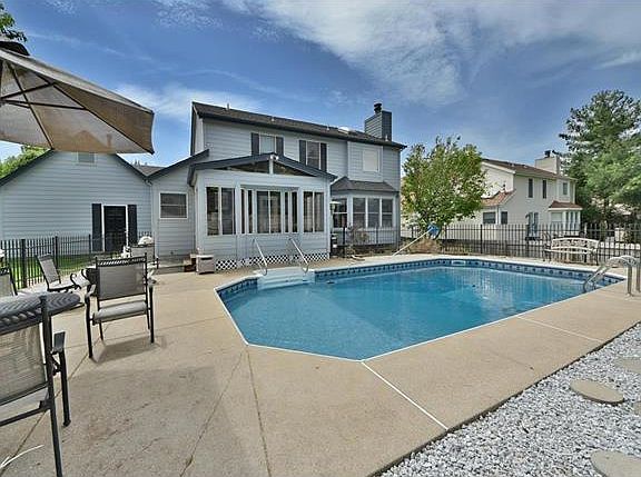 IMPRESSIVE traditional 2-story w/4-beds, 3-baths, w/private in-ground pool in Woodfield subdivision. This AWESOME property has plenty of room for all including living room, formal dining room, family room with brick surround gas fireplace flanked by built-in's with rear wall of bay windows overlooking gorgeous pool. Space flows naturally to a large kitchen with breakfast area opening to sun room through double french doors with pool access. The kitchen has an island peninsula with planning desk, vaulted ceiling with skylight and stainless appliances. Main floor laundry flows off kitchen to access entry for attached 2-car garage. Four large bedrooms on 2nd level including master suite with cathedral ceiling, circle top windows and large walk-in closet. Master bath includes oval tub, skylight, double sink and separate shower. Three additional large bedrooms plus full hall bath and LL finished space. Gorgeous wood doors and trim throughout. New HVAC, garage door opener & water heater.