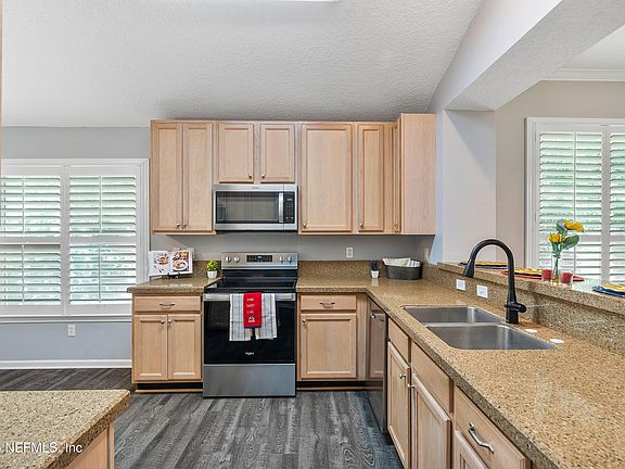 Open House on Sat 11 AM to 3 PM to show you our wonderful Townhome with Eagle Harbor Aminities. Charming 3-BR, 2-BA townhome situated on a desirable lot with woods view from back patio. The living and dining area feature LVP floors, while the kitchen offers granite countertops, breakfast nook, and all new Stainless Major Appliances. The primary suite comfortably accommodates large furniture and includes a bath with a separate shower, garden tub, double vanities, and walk in closet. The other bedrooms are ideal for guests or a home office, with a full hall bath nearby. A laundry is centerally located. Plantation shutters are installed throughout. Recent updates include a roof, 3yrs old, water heater 6yrs old & HVAC system less than 5 yrs old. A screened patio, beautiful landscaping. HOA fees cover exterior maintenance and Eagle Harbor amenities included with CDD fees. Home is conveniently located - close to shopping, hospital, medical offices, restaurants and more... Make