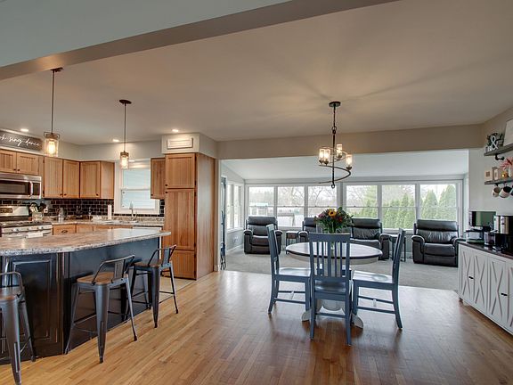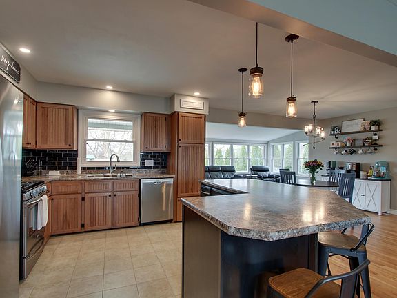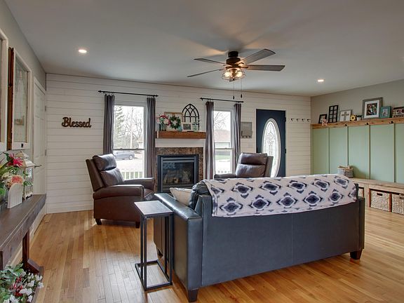 This charming and well-maintained ranch-style home offers 3 bedrooms with the potential for a 4th in the basement (no-egress window), 3 full bathrooms, and a partially finished basement for even more living space. The open-concept main level features beautiful hardwood floors in the living and dining areas, a cozy fireplace, and main floor laundry (with hookups in the basement as well) for added convenience. The spacious master bedroom includes its own full bath. Step outside to a brand-new deck and patio with a fully fenced backyard — perfect for entertaining or enjoying peaceful evenings. Full of charm, character, and pride of ownership, this home is a must-see! * Septic pumped in 2024 and lateral lines were replaced.