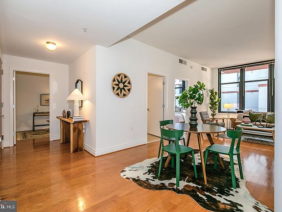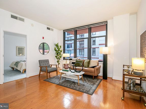 Welcome to this bright and sunny modern 3 bedroom (3rd bedroom has no window but full size closet), 2 full bath condo that faces a quiet courtyard with 1 garage parking space located in the heart of U Street. Stepping into the entryway of this spacious residence, there is room for a table to drop your keys down and hang your coat in the large coat closet. Continue to the main living room, dining room and kitchen which are all open concept and perfect for entertaining! Guests can enjoy the living space with oversized windows and super high ceilings. The kitchen has granite countertops and stainless steel appliances and an island with a place for an eat in kitchen area. The main bedrooms are on opposite ends of the living space for more privacy. The primary bedroom has a lot of natural light and is oversized with a walk in closet and another closet for additional storage. The ensuite bath has both a shower and a tub/shower combo. The secondary bedroom is spacious and also has great natural light and good size closet. The second bath is conveniently off the second bedroom/living room and easy access to the third bedroom for guests to use. The third bedroom is an added bonus for an office/den, playroom, nursery, or guest room, nicely offset from the rest of the condo for quiet space to work or relax and also includes a great closet for guests and storage. The condo has been well maintained and has a washer dryer in unit, hardwood floors in the living areas and new carpet in the bedrooms and the HVAC unit was completely replaced in 2020. The Rhapsody features a huge furnished roof deck with the best city views in the neighborhood, grills, and is perfect for entertaining or just relaxing. There is also on-site management, fitness room, and package storage. Conveniently located just across the street from the new Whole Foods and a delicious new coffee shop/bar Unido, around the corner from popular restaurants and bars like American Ice Co, Emmy Squared, Takoda, Wet Dog Tavern, Atlantic Plumbing movie theatre, and so many more shops and restaurants on U St, Shaw, and Logan Circle. Commuting couldn’t be easier with the U St Metro 1 block away, several bus lines and bike shares steps away! Welcome Home!