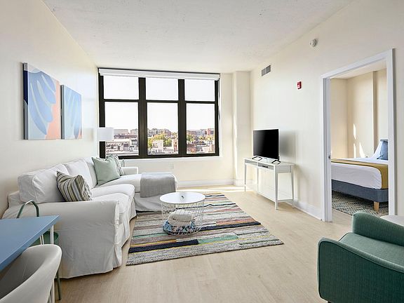 Location, location, location! This beautifully appointed 2 BR, 2 BA penthouse features a loft office and a large 300 sq. ft. private outdoor terrace. The apartment offers abundant natural light throughout and is available fully furnished and stocked for $4500/mo., or unfurnished for $4000/mo. This penthouse residence has an entry hall with a large walk-in closet. The main living space offers amazing city and sunset views through the extra large windows. The kitchen features stainless steel appliances and is fully stocked with everything you would need to cook and entertain. The two large bedrooms have Queen beds, brand new linens, and spacious closets. Upon ascending the circular staircase, there is a bright loft space which makes a perfect home office. Sliding glass doors open to the beautiful private terrace with plenty of room for entertaining. All furnishings are brand new in the apartment. Three mobile desks allow versatility for indoor/outdoor dining and working with amazing views. The apartment offers plenty of storage with two walk-in closets and an additional secure storage unit in the basement of the building. The Rhapsody features on-site management, fitness room, package storage and a huge common roof deck with amazing city views think perfect spot to watch July 4th fireworks and grills. Conveniently located just across the street from the new Whole Foods, 9:30 club, Atlantic Plumbing and the U Street Metro as well as just a short stroll from tons of additional restaurants and shopping on U Street and Logan Circle. The apartment includes new linens/towels, a well-stocked kitchen, two smart TVs, and an in-unit W/D. A full list of amenities provided upon request. Two tandem parking spots available for an extra $200 per month. Minimum 6 month lease. No smoking permitted! Renter responsible for all utilities (electric, water, internet). Unit is available fully furnished and comes with a fully-stocked kitchen and linens.