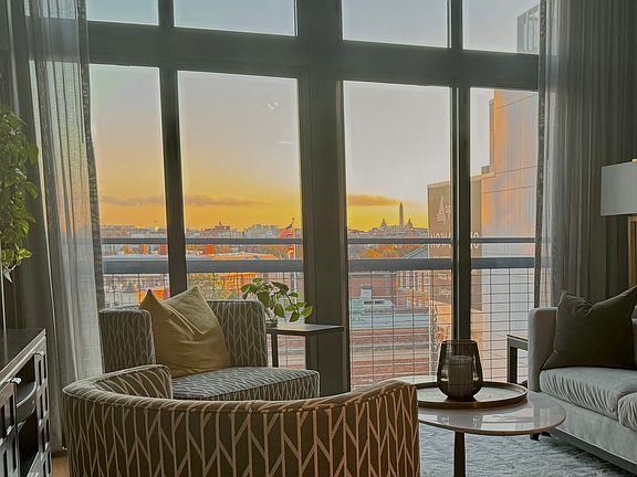 Rarely available penthouse unit at The Rhapsody! This spacious, duplex 1 bedroom PLUS DEN/OFFICE and PRIVATE PATIO is available FULLY FURNISHED or unfurnished. The unit features 9' ceilings, hardwood floors, stainless & granite kitchen with breakfast bar, large primary bedroom with spacious, custom-designed walk-in closet, in-unit washer/dryer and floor to ceiling windows offering stunning city views including the Washington Monument and Capitol. Sunny southern exposure floods the unit with natural light. Upper level den/office opens up to a private roof-top patio. Building amenities include an on-site building manager, secured package room, fitness center and common roof terrace with patio furniture, prep station and gas grill for residents to enjoy. With a Walk Score of 98, you'll be just steps to public transit, Whole Foods, group fitness studios, restaurants, bars, boutiques, and all the vibrant U Street Corridor has to offer! Base Rent - fully furnished $3,500 per month Base Rent - unfurnished $3,200 per month Garage parking included. 1 Bedroom 1 Bathroom 1 Den/Office 1 Private Patio 1 Parking Space Appliances gas stove, refrigerator, dishwasher, microwave, garbage disposal, washer, dryer Central Heating and Cooling heat pump (ecobee controlled) Minimum one year lease. Owner pays gas and water. Tenant pays electric. No smoking in unit. Dogs allowed with $250 pet fee paid at signing. No cats. Tenant subject to building rules and regulations. Unit is available fully furnished.