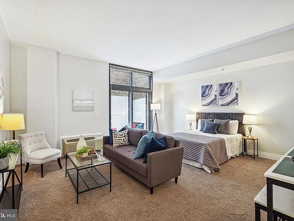 Surprisingly open, spacious, and practical condo in The Rhapsody that blends modern conveniences, location, and affordability. Grand, 160-sqft private patio with tall sliding glass doors lets in lots of natural light and expands your living space. Updated kitchen with granite countertops, white shaker cabinets, stainless steel appliances. Expansive studio with soaring ceilings and lots of layout options for living, dining, and sleeping to make it your own. Enjoy the spacious walk-in closet and large, fresh bath with thoughtful updates. Washer/ dryer in unit, low condo fee! The pet-friendly Rhapsody includes a massive rooftop deck with grills, tons of seating areas, and incredible views for miles. Super close to a plethora of dining, nightlife, groceries like Whole Foods, shopping, gyms, parks, 9:30 Club, Howard U, METRO! Convenient access to U St and other main thoroughfares.