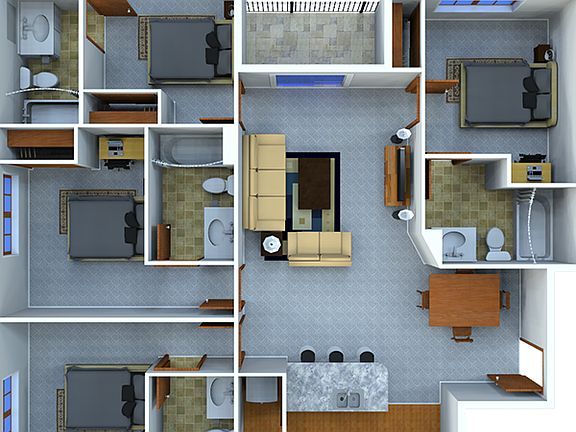 4 bedroom, 4 bathroom apartment. By the bed leasing. Furnished. Electricity and Water included. Cable and wifi included. Washer and dryer in unit. Inclusive, but may have an electric or water overage bill (very rare and inexpensive).