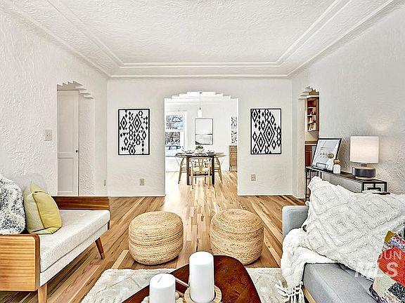 An Art Moderne architectural gem, resting on a corner lot within blocks of 17th & State amenities and downtown attractions. This streamlined architectural design was influenced by the International Style taking form in Europe in the 1930s. The crisp white stucco exterior and distinctive rotunda entry accentuate the style's iconic asymmetrical windows. Inside, the historic character continues in the stair-stepped arched entryways, hardwood floors, and functional built-ins.