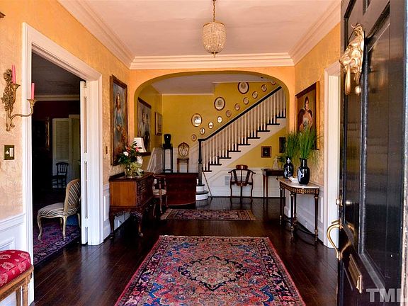 The Beamon-Jones house is an elegant 1920's Georgian Revival in one of the most desirable neighborhoods in Raleigh. Top quality craftsmanship and finishes throughout with nearly 10' ceilings in the formal areas and 9' ceilings on the second floor. Generous entry with arch is flanked by a grand living room and large dining room. First floor also includes a library, breakfast room, paneled den, butler's pantry, half bath and eat-in kitchen. All on a stately lot with mature plantings and original garage.
