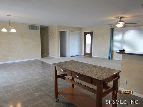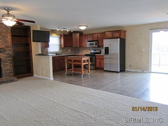 Nice open concept home with fireplace, built in shelving and patio door that leads to the deck and patio! First floor laundry is a plus! 3 Bedrooms, 2 baths, Large family room in the basement. The seller is leaving all kitchen appliances, freezer and living room TV. This home has a roof and new windows that were updated a few years ago! Great buy! Good location! CALL REAL LIVING VANDALIA REAL ESTATE INC. FOR MORE INFORMATION AT 618-283-4436.