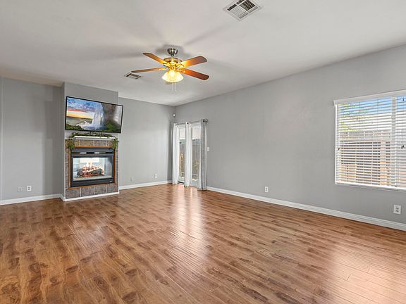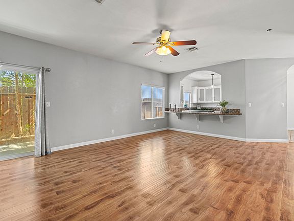 Beautiful Spanish Style Home in the Windsong Estates. This custom single-story home has 3 bedrooms, 2 bathrooms & was built in 2004, offering 1473 square feet of living space. It is conveniently located near shopping and dining and is within walking distance to Tierra Del Sol Golf Course, Central Park Lake and California City's Central Park. At Central Park there is a community pool, baseball fields and dog walk area. Once you arrive, you will enter through the gated courtyard. This would make the perfect place to put some patio furniture, gazebo and potted plants to create a beautiful outdoor space. Entering the home, you will be welcomed by the sleek laminate wood floors throughout all common living spaces and bedrooms. The spacious kitchen has tile flooring, a beautiful arched doorway and features granite countertops, stainless steel appliances & sink, and a breakfast bar that opens up to the family room. There is also a dining area in the kitchen that looks out to the courtyard. The master bedroom includes a double-sided fireplace (shared with the living room) and an attached master bathroom that features dual vanities, a shower/tub and a walk-in closet with built in shelving for added organization. Other features include ceiling fans in all bedrooms, washer/dryer hookups in the garage and new fence in the backyard. Schedule your showing today!