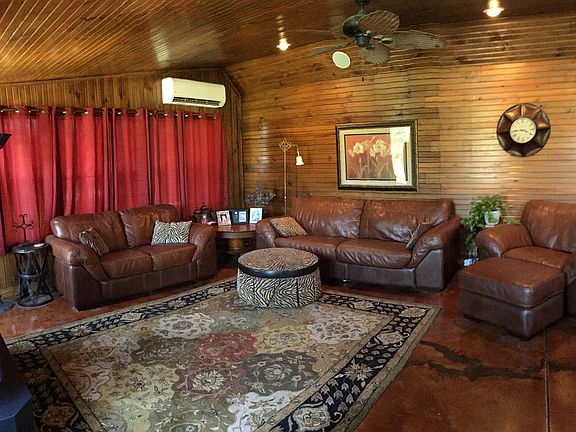 Hilltop Beauty with NEWROOF, Updated Kitchen, bathrooms, PINE wood floors upstairs. Large living area with wall of windows overlooking pond and beautiful pastures. Open kitchen with Travertine floors, stone counters, maple cabinets, stove, microwave, dishwasher and washer dryer. Open floor plan downstairs with large living room, dining, full bath and 1 bedroom down. 36x48 steel barn has 2 horse stalls with room for 3 more as well as a tack room, and 12x36 concrete floored storage area. Wonderful workshop area and garage roll up doors provide ez access to pasture or concrete ally in barn area. Pipe and horse wire paddocks and pastures with several large trees and Bermuda grass. Large pond and storm shelter. Fenced riding arena with shelter for horses or livestock. Electric gate provide convenience and security on this private and beautiful property only 2 miled from Turnpike and close to a thriving community.