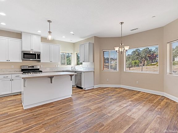 Stunning West Golden Hills modern ranch style home! Built in 2019, this 1923sf 4 bed 2 bath home includes the adjacent parcel bringing total property size close to an acre(.88ac). This amazing home features an open floor plan, vinyl wood plank floors, 9ft ceilings and a cozy corner fireplace. The gourmet kitchen is designed to be the heart of the home, which opens to the great room and dining area with amazing views. The kitchen is complete with stainless appliances, shaker cabinets and quartz counter tops. Spacious master suite features large walk in closet, soaking tub, large tiled walk in shower, shaker cabinets and beautiful quartz counters. Enjoy a park like setting with well maintained grounds amongst the oaks.