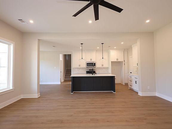 Discover your Dream Home on Approximately 1.10 Acres with 5 Spacious Bedrooms or 4 bedrooms with bonus upstairs. 2 Full Bathrooms. An Open kitchen with island. Living area with gas Fireplace logs. Split bedroom layout. Pantry is large. Primary bedroom is private with large walk in closet including built ins and drawers. The primary bath features a tiled shower and soak tub with two vanities. Luxury Vinyl Flooring, tile, and carpet in bedrooms throughout. Custom Cabinets and Quartz Countertops. Laundry room is right off garage. Enjoy your Covered Back Porch and Deck. The yard is very large with a great spot to build your shop. A Must-See in a Prime Neighborhood!
