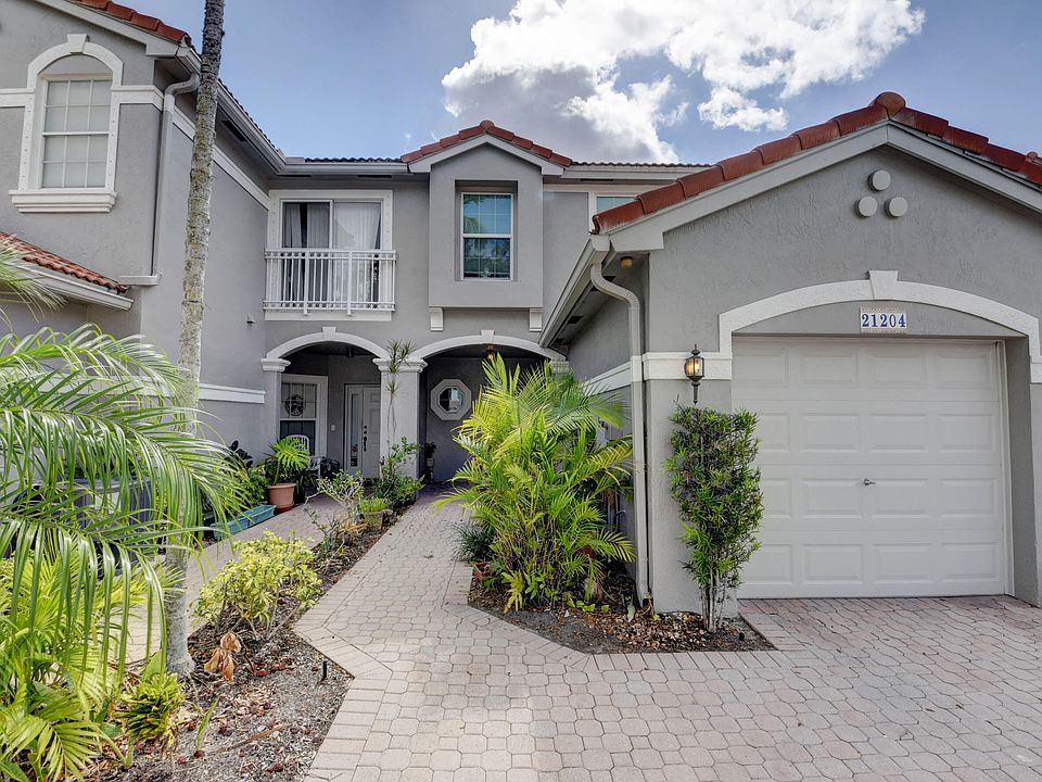 Beautifully updated townhome in popular Mizner Pointe. Laminate flooring through out home plus large baseboards. All windows and sliders replaced with impact glass! Downstairs half bath updated with replaced cabinet and mirror. Large storage area under the stairs. Updated kitchen appliances and pantry plus extra storage. Brand new A/C and water heater about 4 years old. Enjoy the peaceful and private screened in patio. Washer and dryer replaced. Master bedroom has walk in closet. Master bath has been updated with replaced shower, double sinks, cabinet and tile flooring. Laundry upstairs. 2nd bath updated! New roof being installed! Pool, clubhouse, tennis, play area, fitness center and billiards. Manned gate!