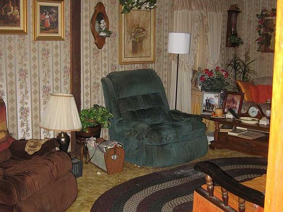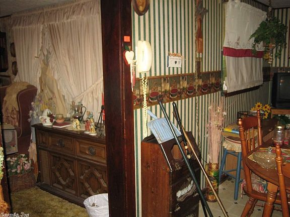 Private road on top of the hill with an acreage that surrounds you! This home is being sold with all its wares (household furnishings to convey at 0 value) 1 Large BDRM with a fireplace (wood burning) with 1 Bth; Large Living Room; Kitchen/Dining area with Laundry room in home. If you are looking for privacy and love the outdoors this place is for you. EZ to show pls contact agent