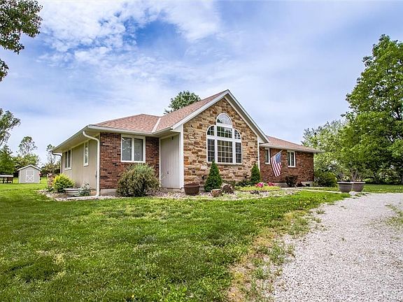 Beautiful brick ranch home that sits on 5 peaceful acres! You'll love the very large living areas this home has to offer! This home flows very flawlessly and is perfect for all your gatherings! Vast master bedroom includes ensuite with a walk-in shower. The second family room offers a charming wood burning fireplace that'll be perfect for chilly winter days. Vaulted ceilings in both living rooms adding elevation to this home. All main level living plus a finished basement! Enjoy your mornings or slow evenings on your back patio overlooking your property. This home is a must see and a short distance to the city! New roof March 2025!