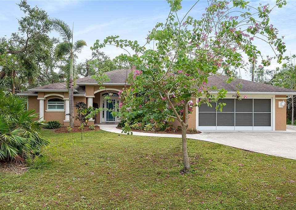 IMPRESSIVE 3 BEDROOM, 2 BATH, 2-CAR GARAGE HOME ON OVER ½ ACRE IN THE HEART OF PORT CHARLOTTE! Custom built by Hamsher Homes in 2015 and is located on double corner lot fully fenced for privacy. Inviting open floor plan features high ceilings, neutral décor, plantation shutters, tile and engineered hardwood floors, double coffered ceiling with crown molding and rope lighting in living room plus zero corner slider allows the outside to become part of the living area. Well-appointed kitchen offers granite countertops, backsplash, white cabinetry, closet pantry, breakfast bar and casual dining area. Generous master suite features tray ceiling, access to lanai, his and hers walk-in closets and private bath with dual vanities and Roman shower. Split floor plan provides privacy for quests with their own wing including two bedrooms and separate full bath. Outside entertaining area offers large, screened lanai with tile flooring overlooking beautiful shaded private backyard with Florida native plantings to attract birds and butterflies. Additional notable features include city water and sewer, impact windows and doors, screened garage with work bench and cabinets, special trusses over garage for storage room, water filter, softener with reverse osmosis, full perimeter rain gutters, 5 Ring cameras, RV pad with 50/30/20-amp outlet, outdoor shed with electric, 18 seer 3-zone air conditioning system with app for wi-fi control and R-19 open cell insulation for efficient cooling throughout home. Very friendly neighborhood convenient to I-75 and close to Murdock restaurant and shopping district, schools, parks, golf and downtown Punta Gorda with fishing, boating, arts, community events and entertainment. Don’t miss this opportunity to make this beautiful home your snowbird or permanent residence.