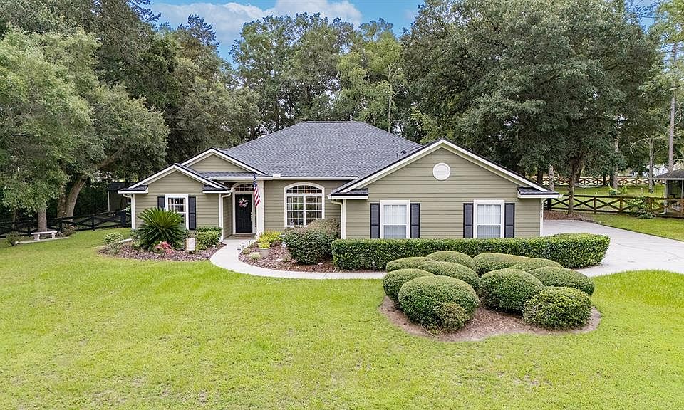 Welcome to your dream home in the serene community of High Springs! This charming 3-bedroom, 2-bathroom residence sits on a spacious 1-acre lot, offering the perfect blend of comfort and tranquility in a beautiful, sought-after neighborhood with access to top-rated schools. As you step inside, you'll be greeted by a bright and open floor plan with high ceilings and plenty of natural light, making the space feel airy and inviting. The large living area, with a beautiful fireplace, is perfect for relaxing or entertaining, while the well-appointed kitchen boasts modern appliances, ample cabinet space, and a cozy breakfast nook. The master suite is a true retreat, featuring his and her walk-in closets, and an en-suite bathroom that includes a walk-in shower and a jetted jacuzzi tub for ultimate relaxation. The two additional bedrooms are generously sized and share a second full bathroom, perfect for family or guests. Step outside to enjoy the screened-in porch that looks out over the expansive backyard, offering plenty of room for gardening, outdoor activities, or even future expansion. The included 12x16 shed with a loft provides additional storage or could be a perfect workshop. This well-maintained home has a new shingled roof, new HVAC system and new exterior paint. This home is move-in ready. The 1-acre property offers privacy and space, while still being close to all the conveniences of High Springs. With its peaceful setting, beautiful surroundings, and close proximity to nearby parks, springs, and local amenities, this home is the perfect combination of rural living and modern convenience. It’s just a short commute to UF, SFCC, and Shands Hospital.