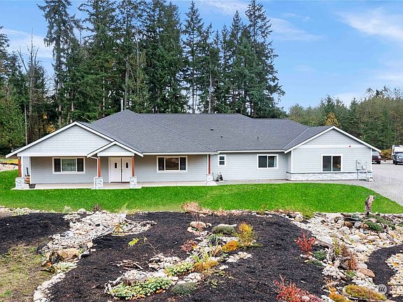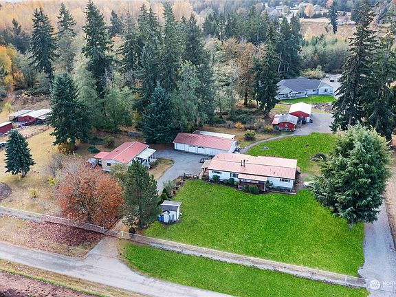 Gorgeous custom Lake Tapps rambler sitting on over 5 flat acres! No wetlands. 5 bdrms, 3.5 bath, 3800 sq ft, luxurious primary suite w/its own wash & dryer, jr suite has full bath, covered patio, LVP flooring, A/C, wood FP, 3 car garage & more. Amazing kitchen feat granite counter tops, SS appl, HUGE island, back splash, lg pantry and custom cabinets. Huge 24x36 shop, & detached 3-car garage. Great community mins to Costco, beautiful Lake Tapps, on private road, surrounded by a greenbelt & 35 mins to JBLM. Top rated Deringer School District. Enjoy the wildlife of the PNW. Fruit trees, peace and tranquility. A hard find!