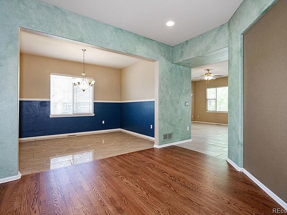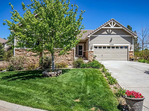 This lovely and well-maintained home in the Saddle Rock Golf Club South community features over 4,000 finished square feet. The flowing open floor plan takes advantage of natural light throughout. The large eat-in kitchen features an over-sized island, quartz counter tops double ovens, and beautiful cabinets. It opens to a roomy family room with built-ins and a gas fireplace. The main floor master suite offers a lovely five-piece bathroom and sizable walk-in closet. The main floor of this charming home also features a large family room, formal dining room, two other bedrooms plus an office, and main floor laundry room. In addition to everything you need for comfortable main-floor living, you'll find a finished basement another bedroom, three quarter bathroom, and two more bonus rooms plus spacious storage space and an additional living space. Quality of home life improvements include an air purifier, water purifier/softener, humidifier. Green energy efficiency and cost savings include a newly installed state-of-the-art 7.2 kW DC solar energy system. Front and side yard is maintained by HOA and a zeroscape backyard. Located in Cherry Creek School District.