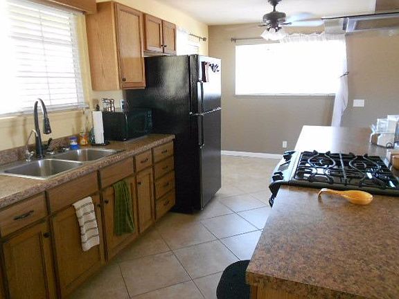 3bdr 2 bth Apple Valley Home.This home has been all redone with totally remodeled kitchen, fresh paint, new appliances, New tile flooring, stainless steel sink. Living room has new paint, all new flooring and a fireplace.Bath rooms have fresh paint, new vanities, new toliets, showers both redone all in travertine tile and new shower doors.New roof installed, new a/c and heat twin pack. Stucco has all been repainted on exterior of house. Circular driveway with RV access and gates on both sides of the house.Lots of concrete in front of home. Fenced with two sliding gates.Full covered patio in the back yard.