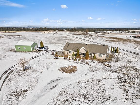 Move-in ready, Fairchild area rancher that allows HORSES built in 2007 on 5+ acres with 3 bed/3 bath, with a 450+ sq/ft bonus room, 2,309 total sq/ft including propane gas furnace, 2-car attached garage with 4+ car detached 36’ x 32’ shop, plenty of off-street parking for all your vehicles just miles from Fairchild Air Force Base, grocery, restaurants, schools & parks! Primary and guest bedrooms with en suite bathrooms. Primary has walk-in closet. Oversized kitchen with ample cabinets. PRIVATE well. Septic. Home audio through with volume controls in each room. Ethernet in every bedroom. Full sprinklers/drip systems. 50 amp RV hookup. Fully Fenced backyard. House garage pre-wired for generator to power appliances. Shop has insulated, independent room housing well pressure tank/pump. 3,000 gallon, in-ground holding tank. All windows tinted for UV protection, lowering energy bills. Solar energy efficient insulation in crawl space and attic. 3 solar fans installed in attic. Book a tour TODAY!