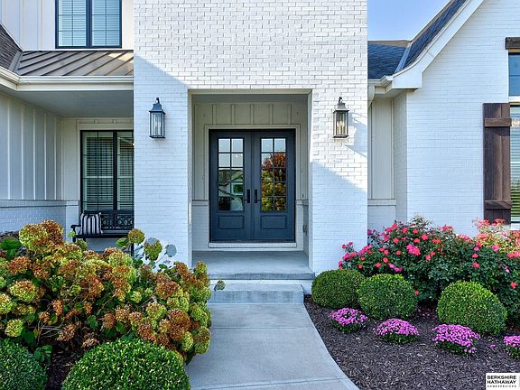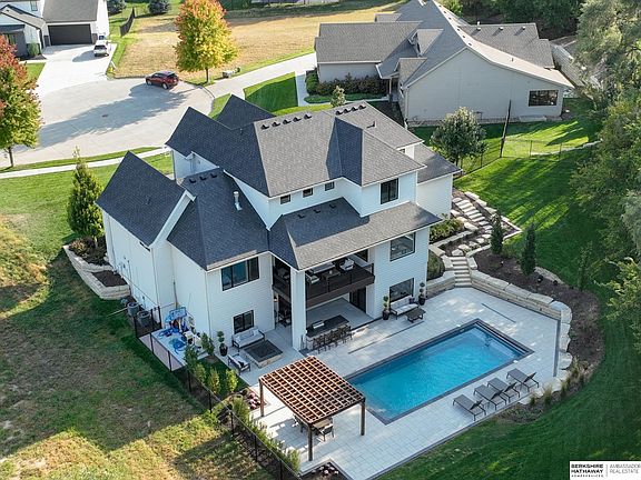 DREAM HOME with all the latest trends and high-end designer finishes throughout! Custom built in 2018 by Nathan Homes, this 1.5 Story in Windgate Ranch features the primary bedroom and laundry room, w/ a personalized mudroom, on the main level. Over 5,000 SF including 5 bedrooms, all with walk-in closets, 6 bathrooms, and 3-car garage w/ fully finished walkout basement. The chef’s kitchen will impress your house guests with a large center island, top-of-the-line Italian Bertazzoni stainless steel appliances, and a walk-in pantry. The fully fenced backyard is an entertainer’s paradise, featuring an outdoor grill kitchen, bar, an in-ground pool with automatic cover, and a fire pit area. Custom landscaping, lighting, an outdoor sound system, and the list of upgrades goes on. Rare, half an acre lot, on a quiet cul-de-sac, tree lined along the back for added privacy. Highly sought after Elkhorn South Schools and walking distance to the middle school. Meticulously maintained