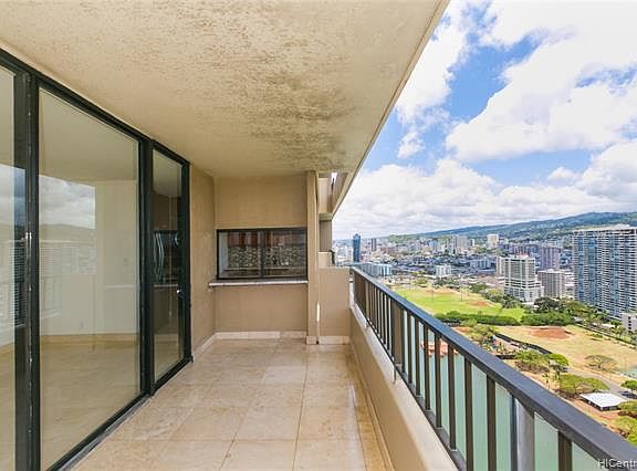 2121 Ala Wai: 2 bedroom, 1 bath popular corner end unit on high floor offering stunning views of Ala Wai, golf course and mountains. High quality workmanship on the Travertine tile throughout entire unit. Upgraded windows in living area and freshly painted. Building is very well maintained, 24 hr security, secure parking and plenty of guest parking. Electric, water, sewer, internet all included in maintenance fee. Amenities include pool, BBQ, rec area, resident manager, sauna, security guard. Sorry, no pets.