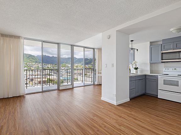 This spacious and recently renovated 1 bedroom, 1 bathroom apartment is conveniently located on the bus line. It includes lanai, 1 covered parking stall and is partly furnished with refrigerator, microwave hood, range/oven, washer, dryer and tankless water heater. Rent includes water & sewer fees. Sorry, no pets. This is a NON-SMOKING unit. Initial Lease, 1 year. No Smoking. No Pets. All proposed adult occupants must see the unit to apply. Applications are available at showing. Copies of valid ID (Driver's License, Hawai'i State ID or Passport) & current pay stub along with $22 non-refundable Application Fee per adult are required to process application. Incomplete applications will delay processing.