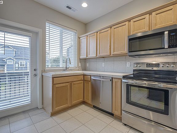 Move-in Ready!! This Wonderful, Spacious Townhouse has New Paint, New Flooring (both Luxury Vinyl Plank and Carpet) New Blinds, Garbage Disposal and Air Conditioning. A Large 20 x 18 Living Room has a Gas Fireplace and lots of light. The Dining Room has its own Space, but can Expand into the Living Room for large Gatherings. The Kitchen has a Walk-in Pantry, Stainless Steel Appliances and an Outdoor Balcony perfect for Barbecuing. The Private Primary Bedroom has a Full Bath, Walk-in Closet and Slider (Could be a Separate Entrance) to the Easy Care Back Yard that includes a Cement Patio and Garden Beds. The Top Floor has 2 Vaulted Bedrooms, A Full Bath and a Loft Area. Nearby Parks, Shopping and Pacific University make this Cul-de-sac Location a Perfect 10!!