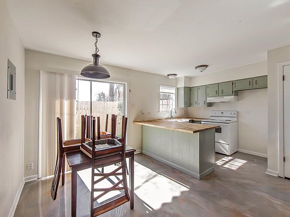Inviting eat-in kitchenNeutral finishesEasy to flow layoutLaminate wood flooring