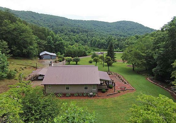 Beautiful home & setting in one of North Georgia's most secluded and natural areas. Walk to Toccoa River and Forest Service land. Central location between Dahlonega, Blue Ridge & Blairsville, GA. Ultimate mountain experience. Enjoy this homeplace sited on 2.6 acres with 2 bedroom suites, complete kitchen w/ view to family rm and sep dining rm. Huge covered porch takes in sweeping front lawn & garden area with view of unspoiled forest service mountain land. Full daylight lower lvl w/ partial kitchen. Space for bdrm & den. Wood stove for backup heat w/sep ductwork to living area. New central HVAC in 2014. Wood floors. Quality home! Large 3-bay garage & workshop plus 2-car carport. Perfect for motorcyclists, bicyclists, hikers, hunters, fishermen & everything outdoors!