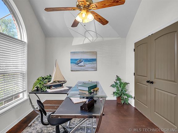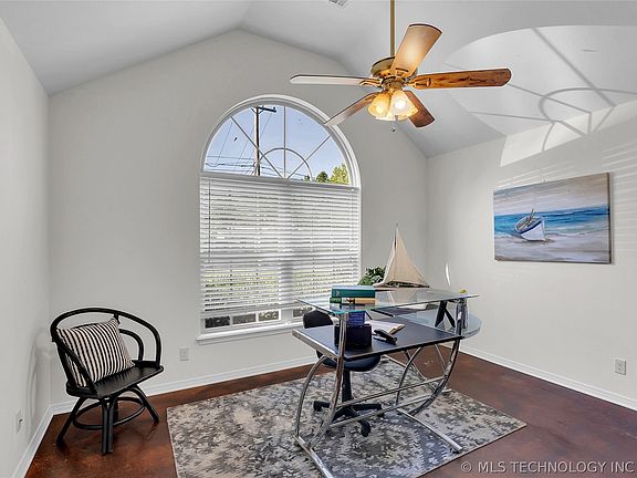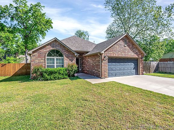 Midtown full brick, 3 bed, 2 full bath home with open floorplan. Vaulted ceiling, large open living, dining, kitchen with bar. Beautiful rock fireplace. Large master with his/hers closets and sinks. Split bed floorplan. Closed in back porch with 2 dog kennels and dog doors with access to backyard. Surveillance/security system with TV stays with home. Close to Gathering Place, River Trails, Southern Hills Country Club, ORU/Victory/Metro/McClure schools, many restaurants and shopping.